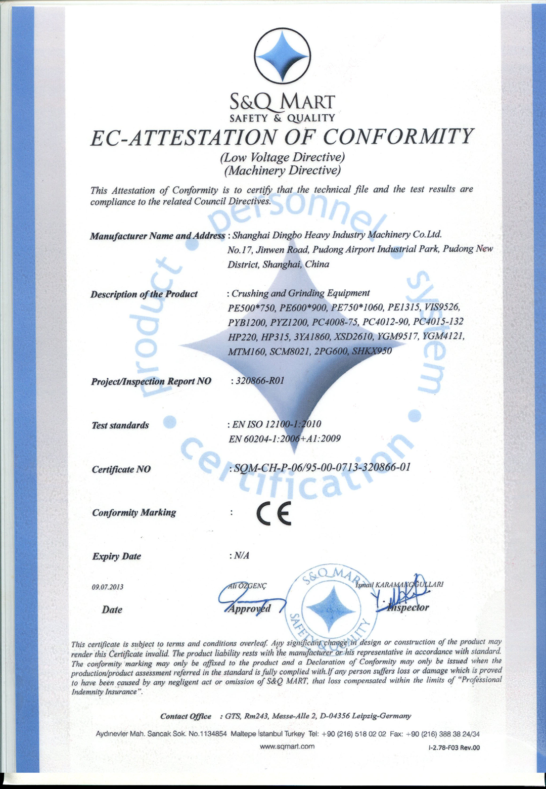 上海丁博重工機(jī)械有限公司是一家國內(nèi)專業(yè)從事工業(yè)礦山設(shè)備研究,制造和銷售的高新技術(shù)企業(yè),公司通過了ISO9001:2000,ISO9001:2008質(zhì)量管理體系認(rèn)證,SGS管理體系認(rèn)證,BV管理體系認(rèn)證,并擁有30多項(xiàng)產(chǎn)品專利,公司產(chǎn)品通過了歐盟CE質(zhì)量認(rèn)證。公司目前擁有國內(nèi)生產(chǎn)制造基地,配有標(biāo)準(zhǔn)化,智能化的生產(chǎn)線,控制實(shí)驗(yàn)室,并配有研發(fā)、生產(chǎn)、銷售及售后團(tuán)隊(duì)。